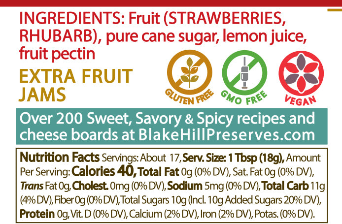Perfectly ripe strawberries are simmered in a rhubarb and lemon base. The tartness of rhubarb is an ideal partner for sweet early summer strawberries and offers a classic taste of the start of summer in Vermont!