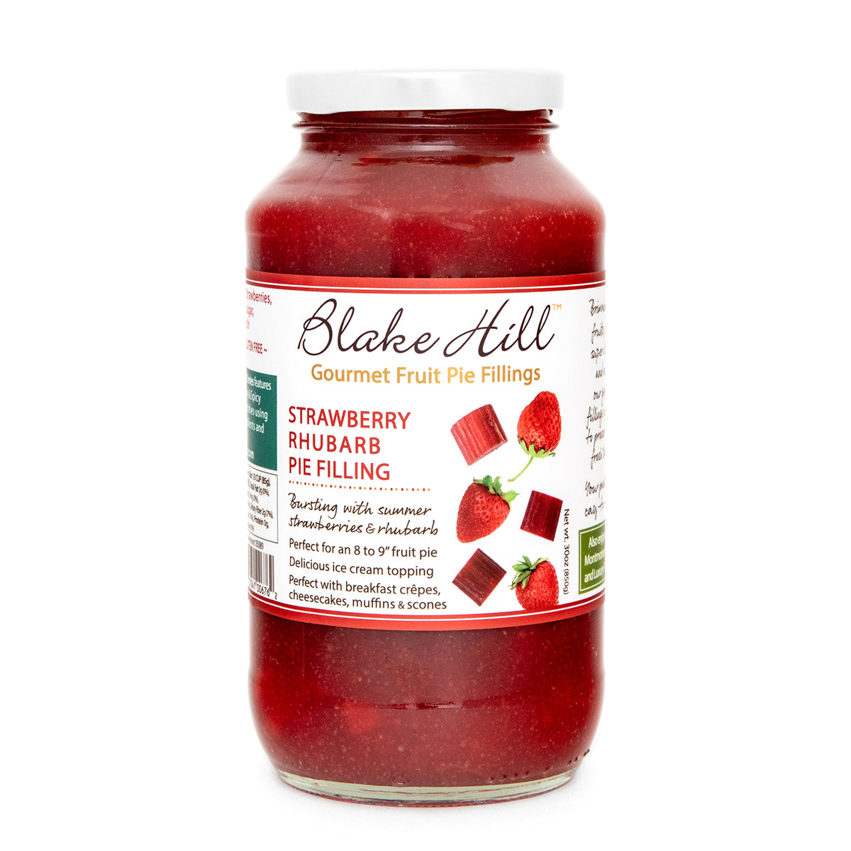 Bursting with summer strawberries and rhubarb, this pie filling is perfect for a 9” fruit pie. We also love using this pie filling in fruit crumble tarts, as a delicious ice cream topping, and as an accompaniment for breakfast crepes, cheesecakes, muffins and scones.