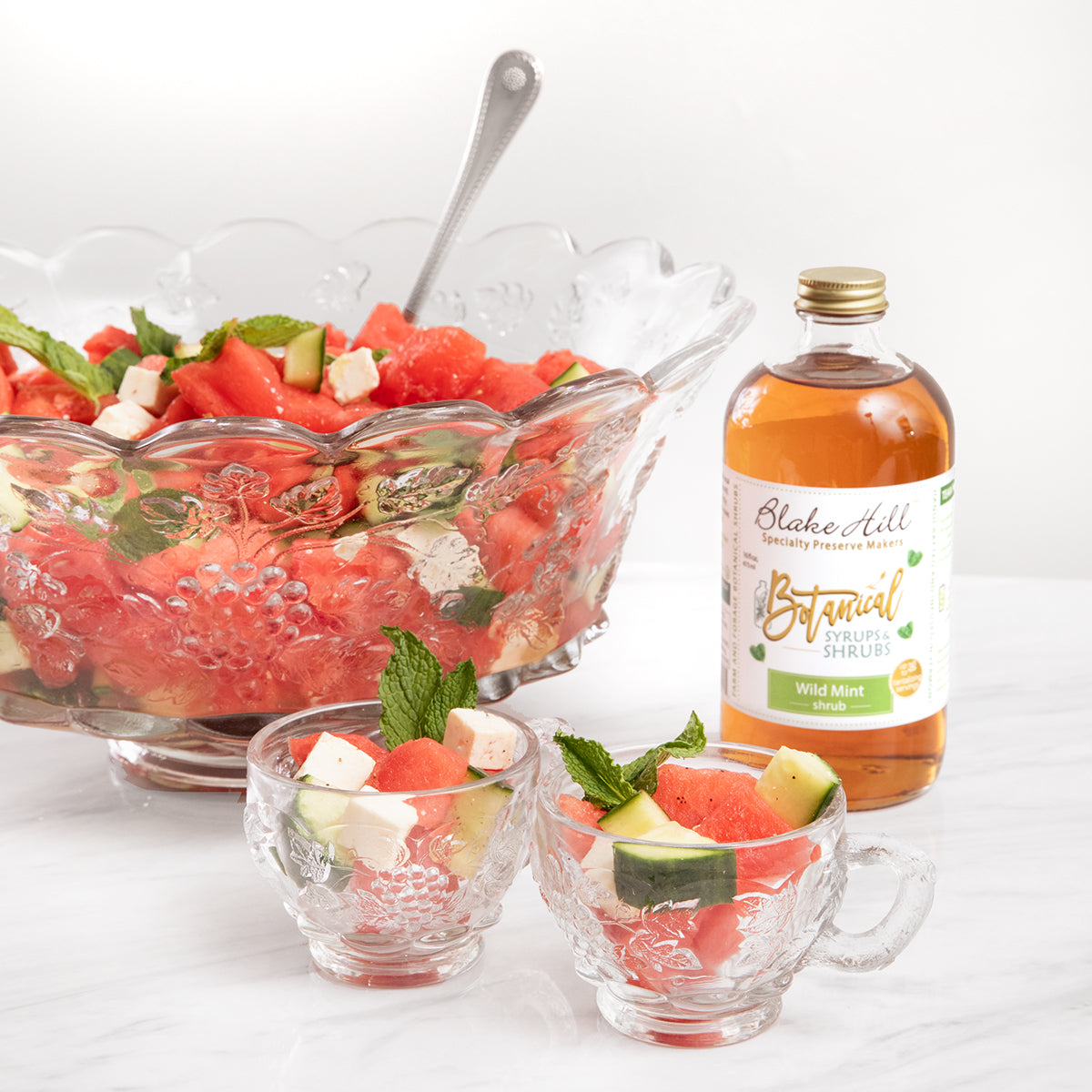 “Within just a few hours of harvest we perform our first hot infusion with apple cider vinegar, and then a long cold infusion to capture the fresh, fragrant, herbal essence of this favorite botanical. Finishing with a dash of cane sugar and lemon juice for the perfect balance of sweet and tart, this is a wonderful Shrub that preserves the essence of Vermont wild mint for you to enjoy year round wherever you may live.”